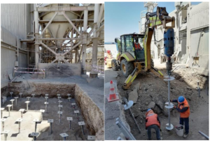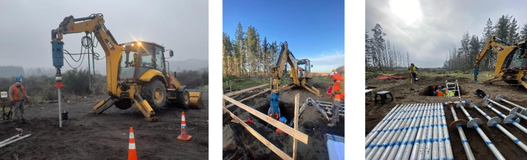 Chile’s world-first integrated climate-neutral synthetic fuel facility demanded foundations supporting industrial loads while meeting environmental sustainability goals. We installed 185 helical piles (model RS2875) with three-helix configurations, handling design loads of 28.4 to 30.11 metric tons in loose to firm clay soils. Installation depths ranged from 4.0 to 5.0 meters, completed over 46 days including load testing—a perfect alignment of sustainable foundation technology supporting sustainable energy production.